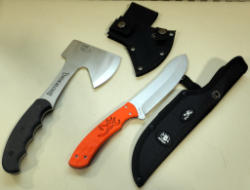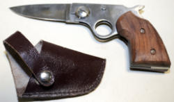 both look like novelty tourist type knives; eagle is mfg. in China and 11.25" long overall; folding knife looks like a spear head, pretty dull and worn; sell for one money