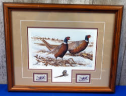 both nicely framed & matted; stamp print is signed & Numbered; stamp one is 17"x16"; sell for one money