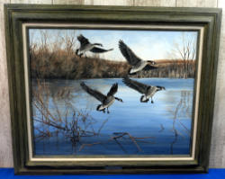 both Canadian Geese; framed & matted; glass faces; bigger one is 20"x17"; sell 2x the money