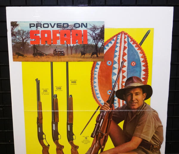 37"x30", shows the New Model 70, 1400, 1200 & 255 Firearms, shrink wrapped to a board to display, looks great