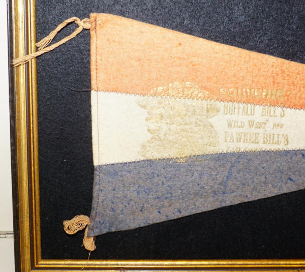 This show ran from 1908 to 1913, 15"x8" plus the frame, just pinned to the frame to display, some fading and wear, but an original piece of Buffalo Bill's Wild West show advertising!