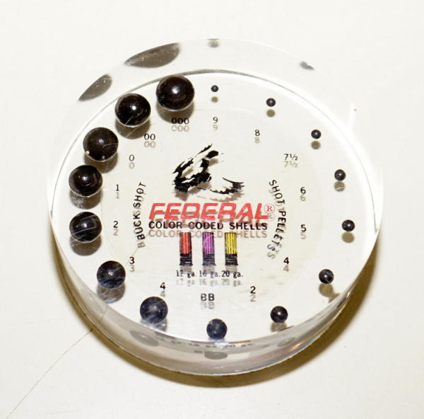 Has shot sizes 9 - 000, 3'' across 1'' thick
