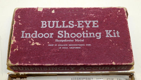 looks complete, box has some splitting on the edges, made by Bulls-eye Manf. Of La Jolla, California, unique piece