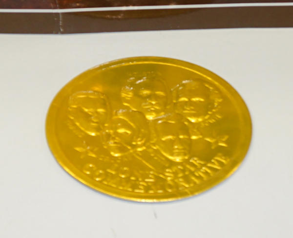22"x40", has been bent down the center, comes with a small gold foil medallion sign too, not perfect, but still good color