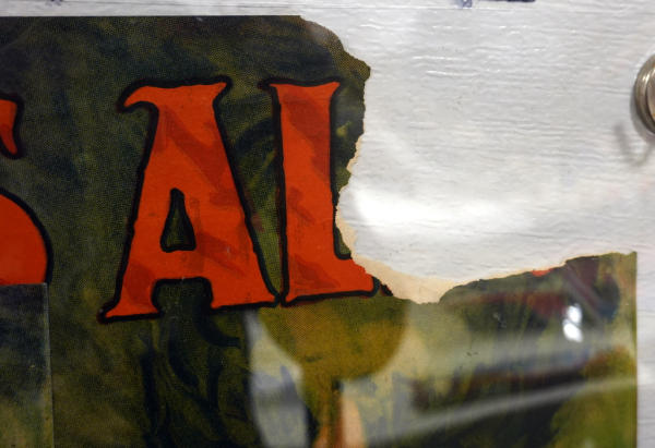 has some damage to the top corner but most of the piece is there and could possibly be repaired; in plastic sleeve; amazing color & detail; original; 39"x27"
