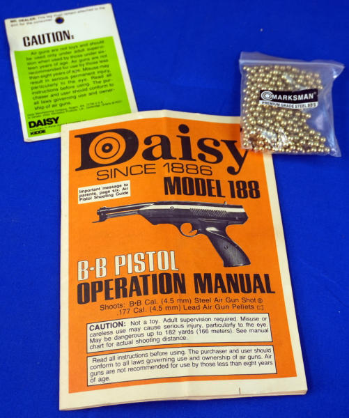 pistol is mint & looks new; decent box condition w/paperwork & BBs; did not test
