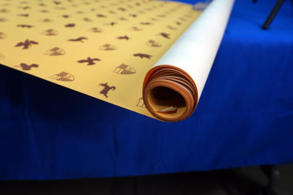 believe this is wrapping paper; 29" long, not sure how many feet but it's a rather large roll