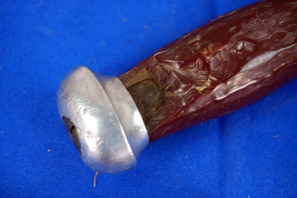 sheath is not original to knife; plastic handle is cracked; blade is 4.5" and 8.5" overall