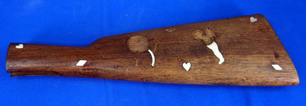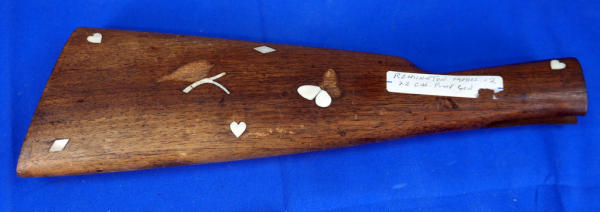 has been customized w/pearl inlay but missing several of the pieces; would fit a Remington Model 12 .22cal Pump right; no cracks in wood and no butt plate