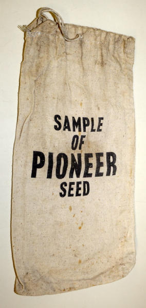 16"x8", some discoloration and wear, I'd guess about a 5lb sack size, a Pioneer collector told me this probably came out of a processing plant, we have never offered one, but there are a few in today's auction
