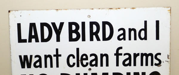 9"x12", some edge wear, unique sign from when Ladybird Johnson was trying to clean up rural America! Never seen one