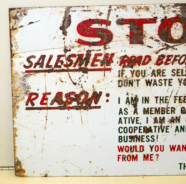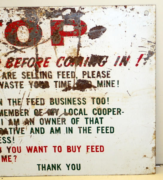 12"x20", heavy paint loss and wear, but a unique sign if you read it, neat piece for the Livestock collection