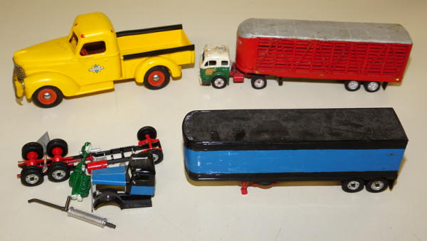 2 models are falling apart, but the wood livestock trailer is pretty neat, the IH Truck has been customized and has some cracks, all to go