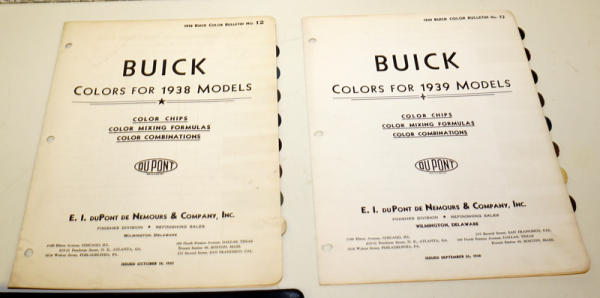1938 Brochure is nice, includes both 1938-1939 Color Bulletins, plus an EMPTY 1939 Dealer Binder that has wear, all to go