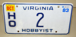 #439 - Virginia 1983 Hobbyist #2 Single Digit Plate