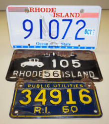 #462 - Rhode Island Plates--'60 Public Utilizes, '56 Antique Auto (paint flaking) & 1992
