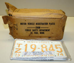 #512 - Large Lot of 1974 MN NOS Plate--all 1974--various prefixes