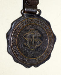6" long, really neat with all the logos, has a list of all the South Dakota Counties on the back with the License Plate number, must be post 1956 since it has Clay County as #19 and it switched in 1956, some wear, but a neat piece with all the logos