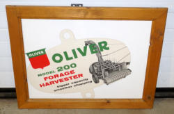 sign is 18"x22", clean and nice with a high-detail graphic of the harvester, in a nice wood frame, but has slid around a little in the frame