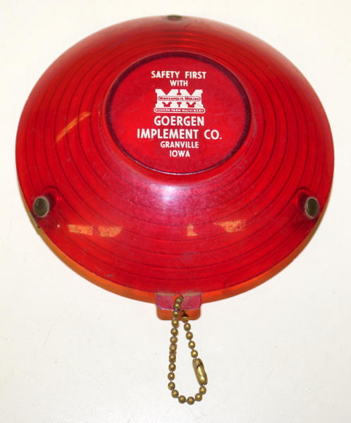 5.5" across, nice original, designed to clip on the tractors rear light to go down the road