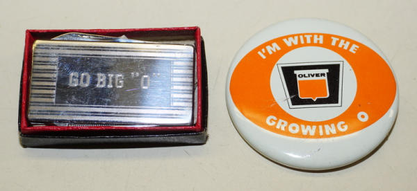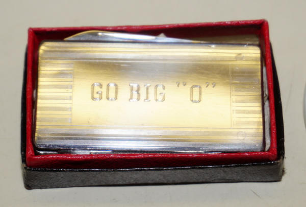 Money Clip is NIB, no logo but has "Go Big O" engraved on the front, Tin pinback has light wear, both to go