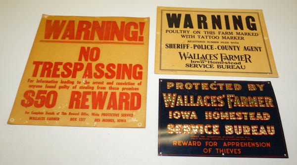 Wallace Sign is 10"x7" tin & and nice, others are cardboard, all to go
