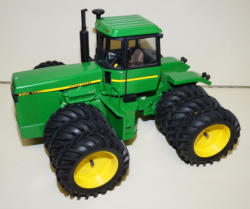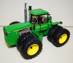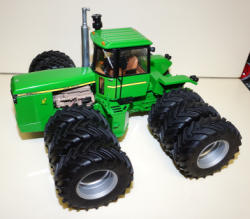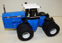 24.5x32 LTS Custom Tires, Custom Clamp on Duals, Hand rails to enter the cab, custom interior to match the real tractor, clear cab glass added, 4-hdy remotes above the drawbar, Chrome Exhaust and Turbo II AC, All Lights & Flashers, Super sharp blue Versatile!