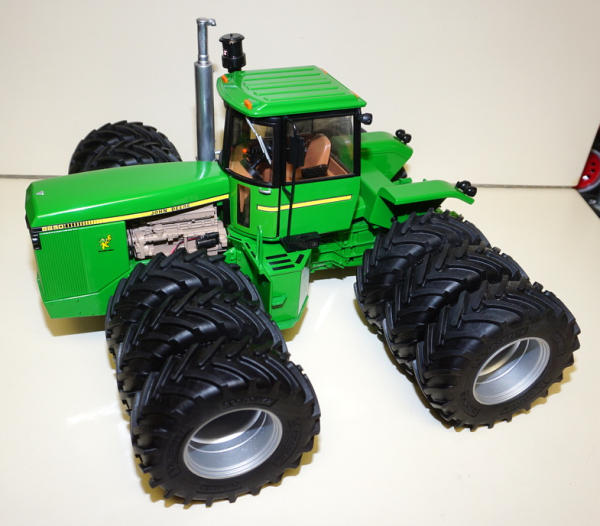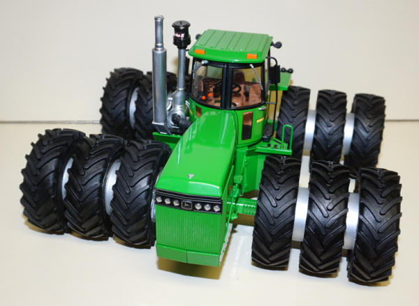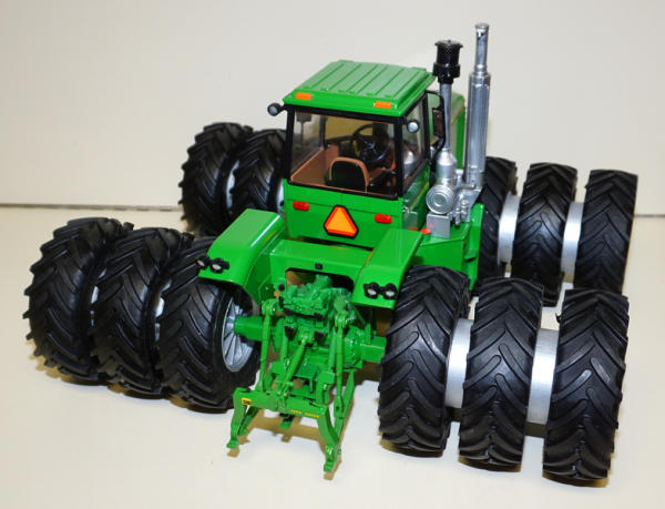 Cab w/ glass, Kinze 855 Cummins engine, LTS custom Triples, Chrome muffler w/ rain cap, Turbo II, all levers, lights, flashers, 3pt w/ quick hitch