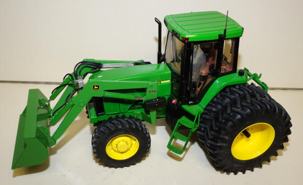 Cab w/ glass, LTS custom rubber w/ rear duals, #640 Loader plumbed into remotes, new style steps, tool box, 3pt w/ quick hitch