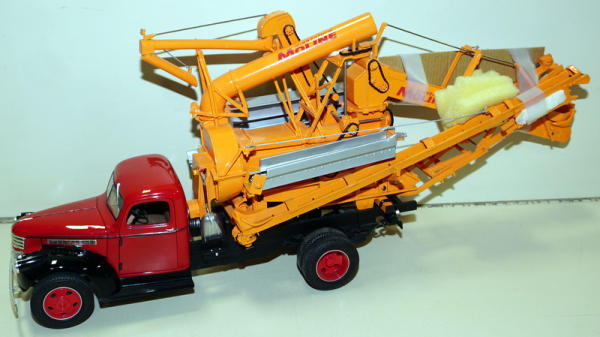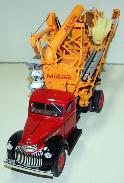 Red/Black Hwy 61 High-Detail Truck with Spec Cast, Resin Cast MM old-style Cornsheller professionally mounted; no moving parts on the sheller, super high detail and nice; absolutely no shipping, way too fragile