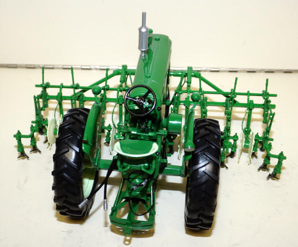 Firestone Tires, 4-row Cultivator is plumbed into the remotes, all levers, lights & pedals, high detail