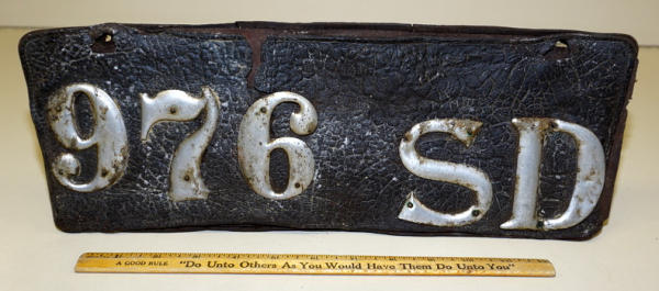 fairly rough original, but large, 15" long, leather is separating and has wear; issued to CM Keeling, Springfield, SD for his 18hp Buick w/ Horns & lights
