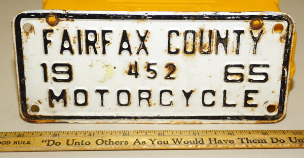 about twice the size of a normal motorcycle plate, some rust and general wear