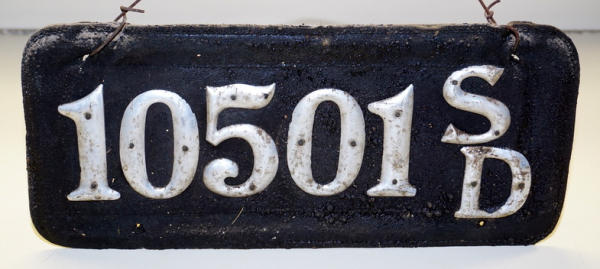 very good original, leather is stiff, but solid, lettering might clean up with some elbow crease and patience; issued on 7/26/1911 to John Todt of Irene, SD for an Overland w/ Horn
