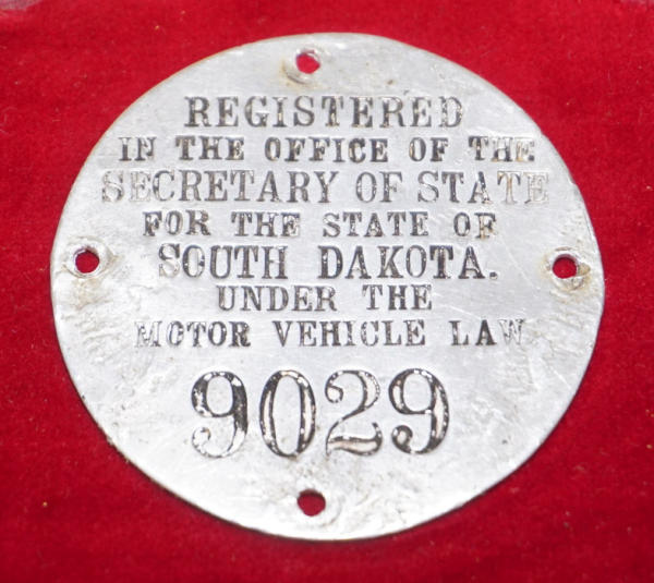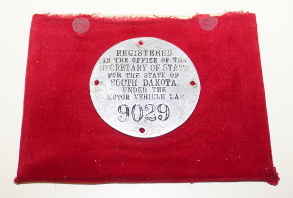 good original with normal wear, issued to HW Mountain, Britton, SD on 5/6/1911 for his 22.5hp Ford w/ Horn & Lights