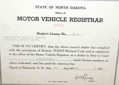 nice original certificate, in an old wood frame, unique being Motorcycle & dealer #1!