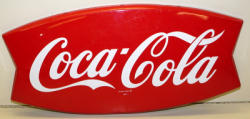 #527 - Coca-Cola Large Fishtail Logo on Cream/White Stripe "Sled" Sign