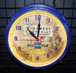 #548 - Chevy Large Dealership Neon Clock--works--Cincinnati Midwest Chevrolet