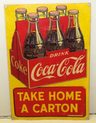 #529 - Coca-Cola "Take home a Carton" w/ 6-pack SST Vertical Sign