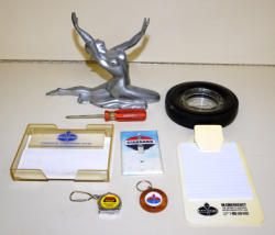 #823 - Box Lot of Misc Auto Related Smalls--Trophy Top, Tire Ashtray, Standard Items & more
