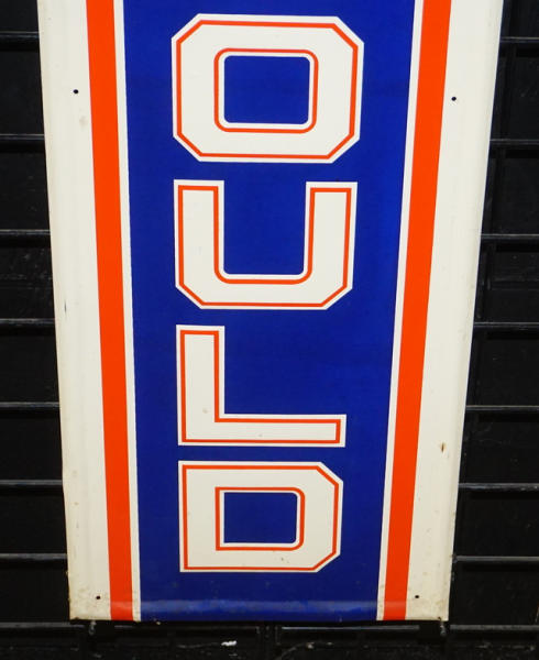 36"x12", great color and graphics, will clean up a little, looks like it was found as a NOS sign and only displayed in the collection