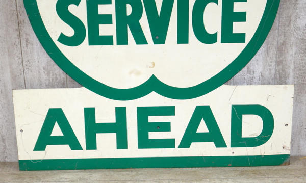 51"x45", good color, some small scuffs and scratches, but overall rates 8.5 condition, heavy metal sign