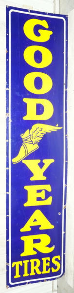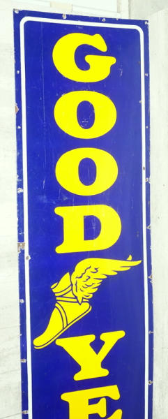 8' tall, 22" wide, good color and gloss, some chips around the mounting holes, but overall a nice condition sign, rates 8 condition