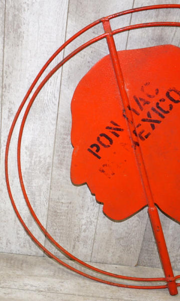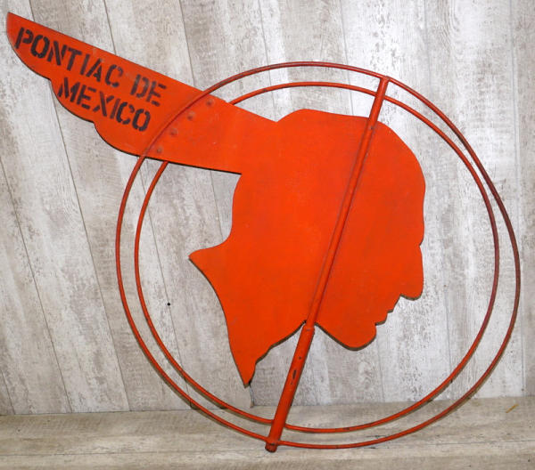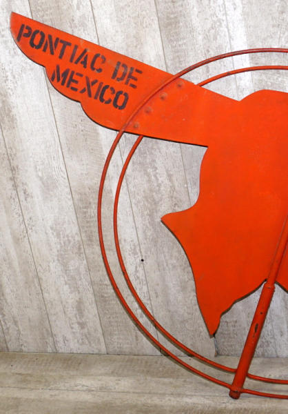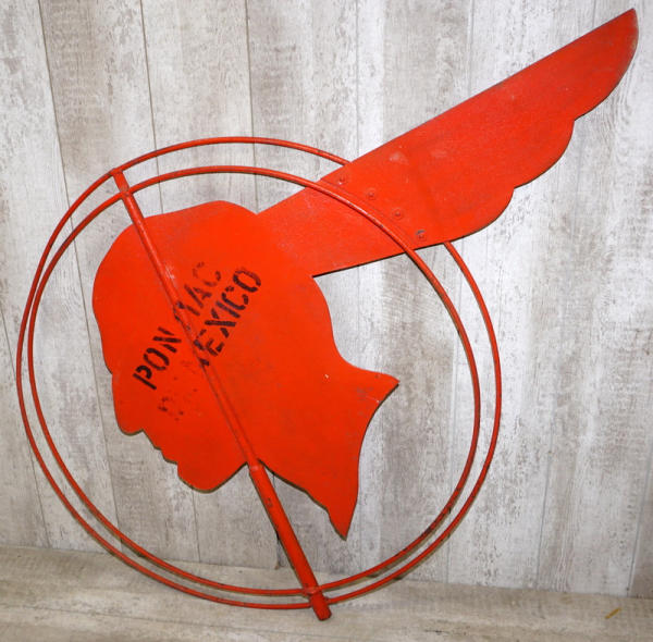 38"x52", very good original, faded and has some wear & chips, but straight, these were on top of Pontiac Dealerships