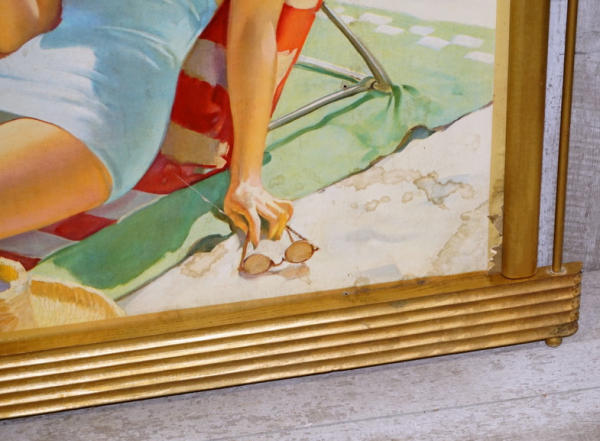 36"x62" overall, good original, frame has some aging, some damage to the lower right corner, but not bad, no shipping