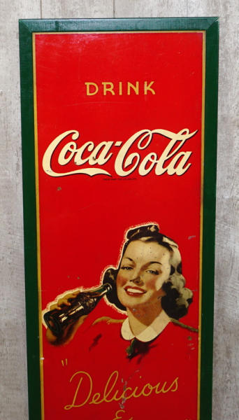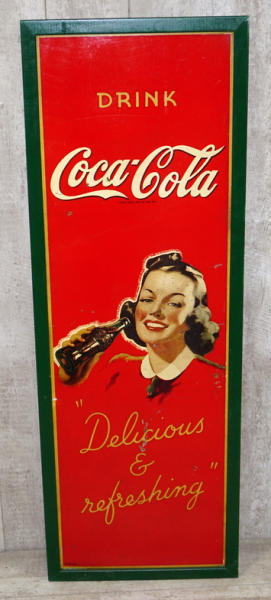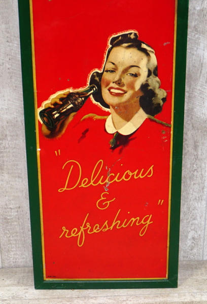 55"x19", new frame, some small spots of damage in the sign, but not bad for a masonite sign, rates 8 condition