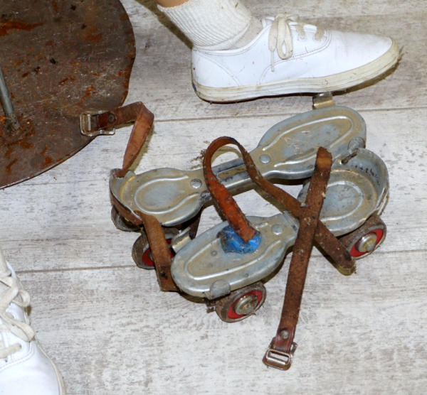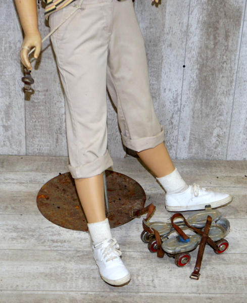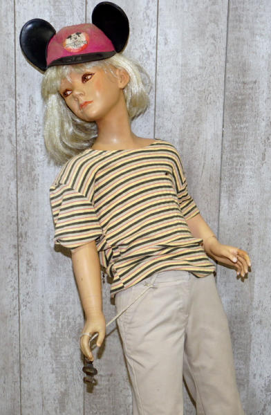 about 4' tall, comes with roller skates and a Mickey Mouse hat, no shipping, pickup only