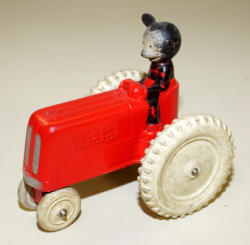 9" wide plaque, near mint condition, finish on the tractor has aged some, but still nice, very hard to find Toy Farmer Gold tractor!