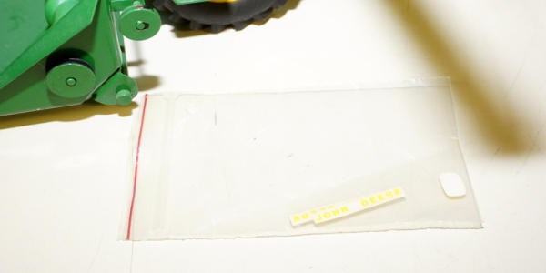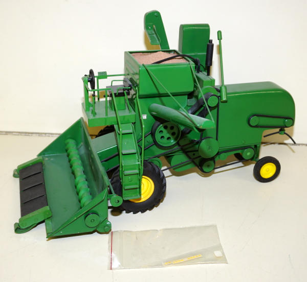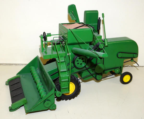 older custom, metal body with some wood parts, has a "full" grain tank too, don't know the builder, no model number either, comes with some JD decals so you can finish