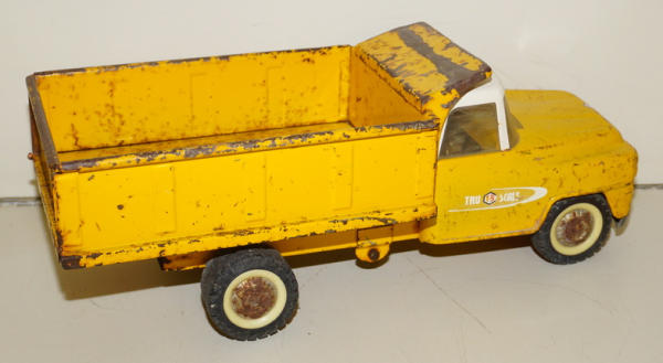 heavy play wear, paint is about 65%, you could only get this truck in a set with a tractor, loader & trailer, not the best, but another hard to find Tru-Scale